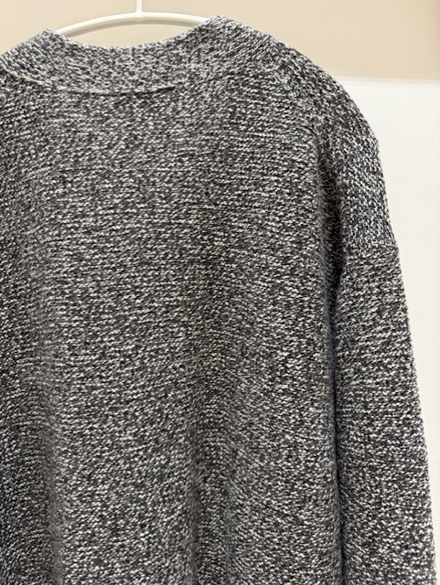 糸を2本取りにして5Gで編んでおり、ヤクの素材とも相性がよく、柔らかい膨らみがありながら、立体的なシルエットに仕上がっています。