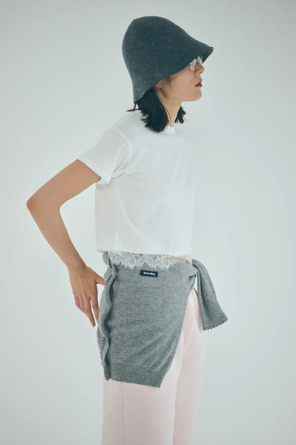 ショート丈のトップと組み合わせて、裾のレースを見せるレイヤードスタイルも愉しめる一品。