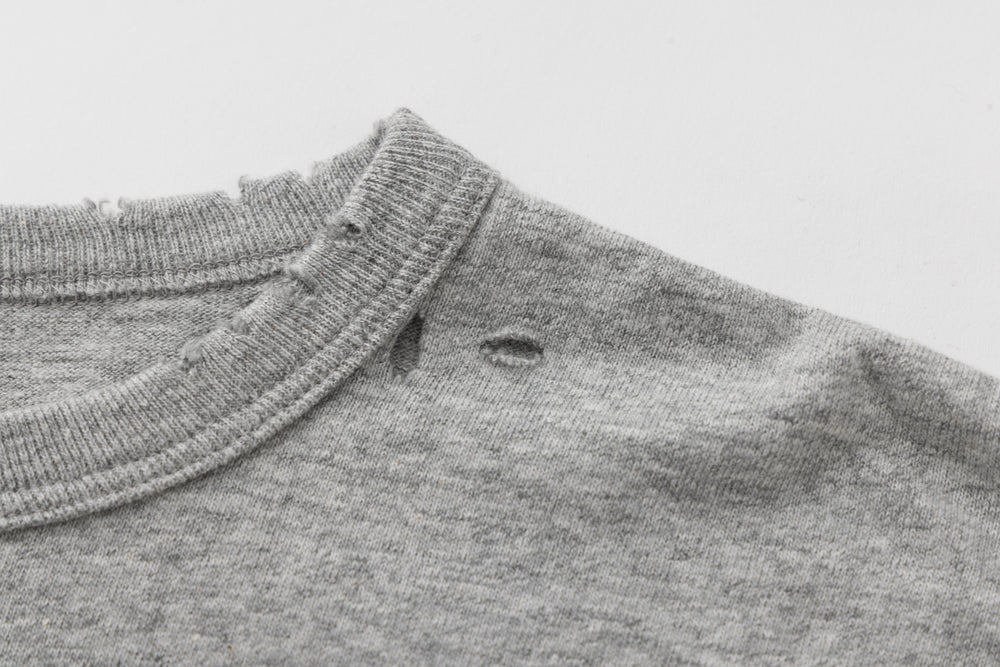 リペアしたような細かいディティールまで1950年代のヴィンテージ TEEを忠実に再現し、ダメージ加工を施しました。