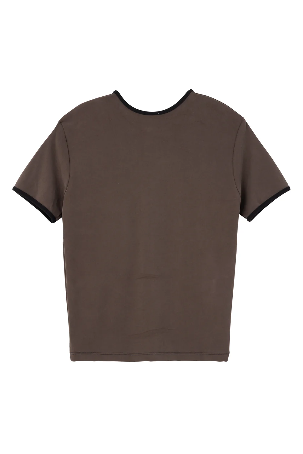 華奢なリンガーラインが洗練された印象を添える、大人のためのリンガーTEE。