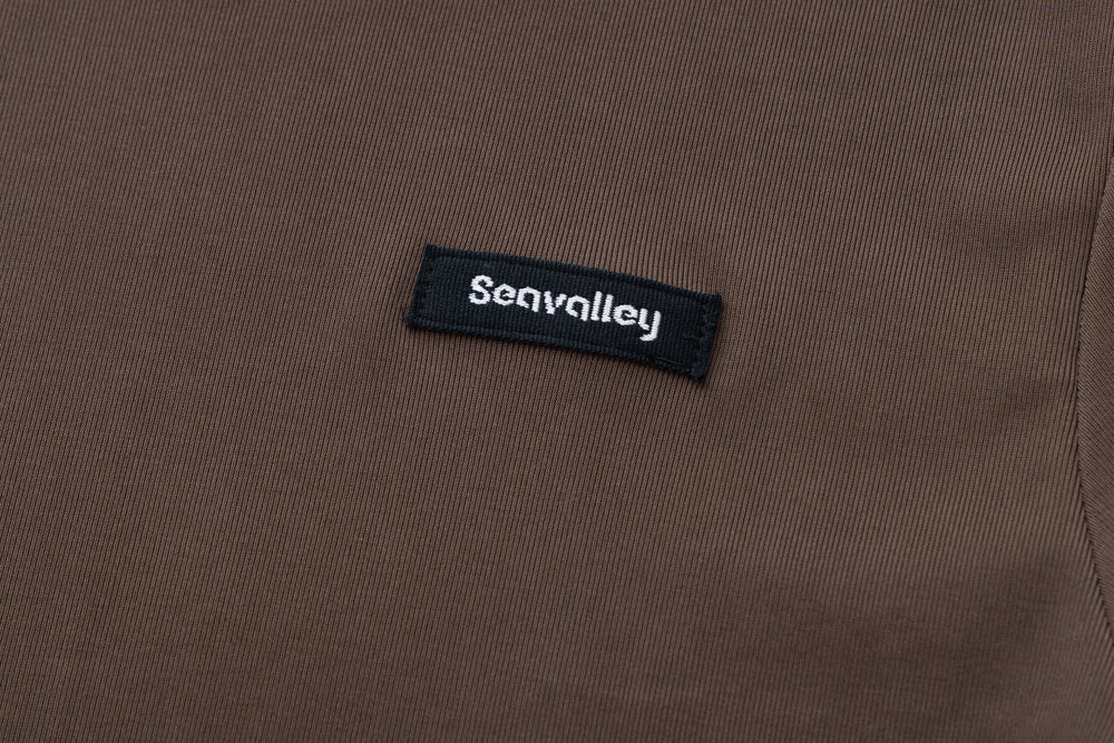 胸元にレイアウトしたSeavalleyのニットパッチが、さりげないアクセントに。