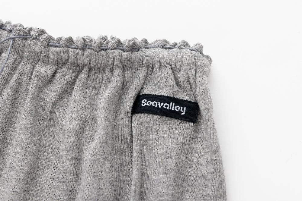 裾にレイアウトしたSeavalleyのニットパッチが全体を引き締め、大人の抜け感のあるリラックスウエアに仕上げました。