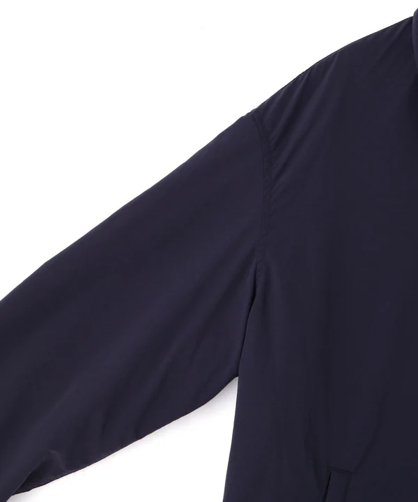 リサイクルナイロンを60%使用し、糸の力で生地を高密度でコンパクトにする超収縮糸を使用しており、この加工技術でしなやかさとハリ・コシ感を表現しています。