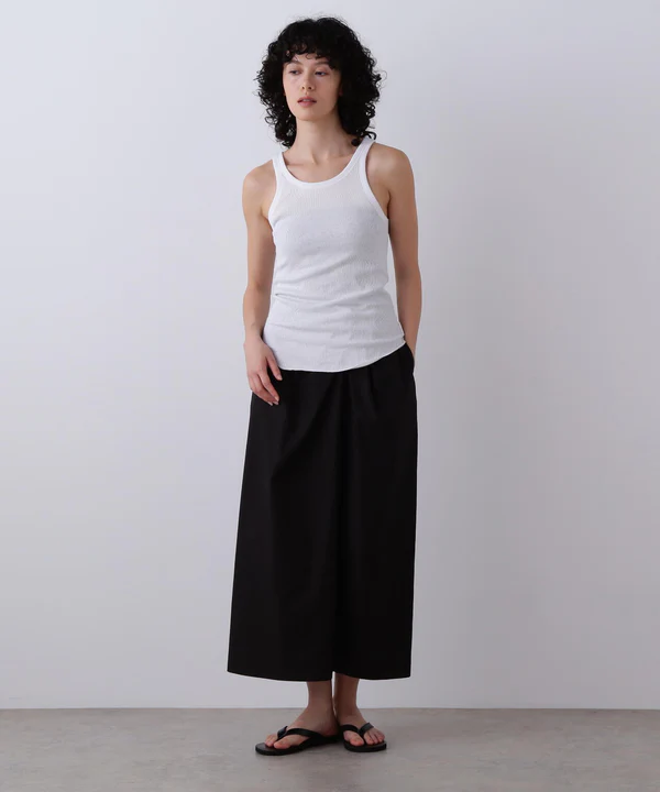 立体的なツイストディテールがアクセントのタイトスカートで、ヒップにゆとりを持たせているため、