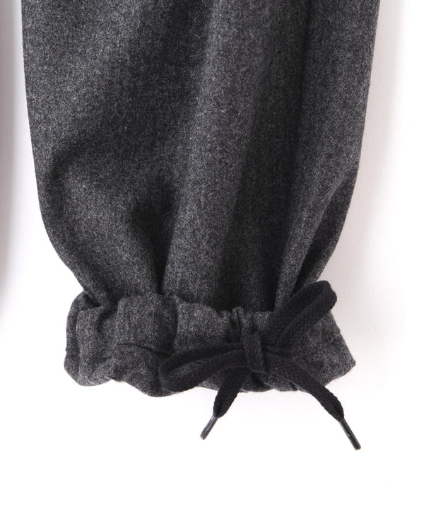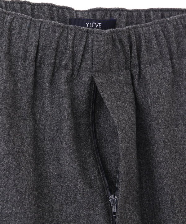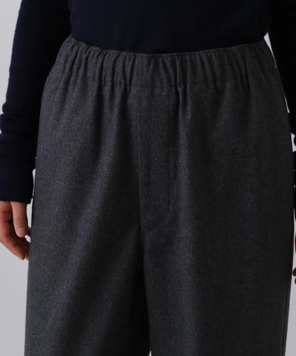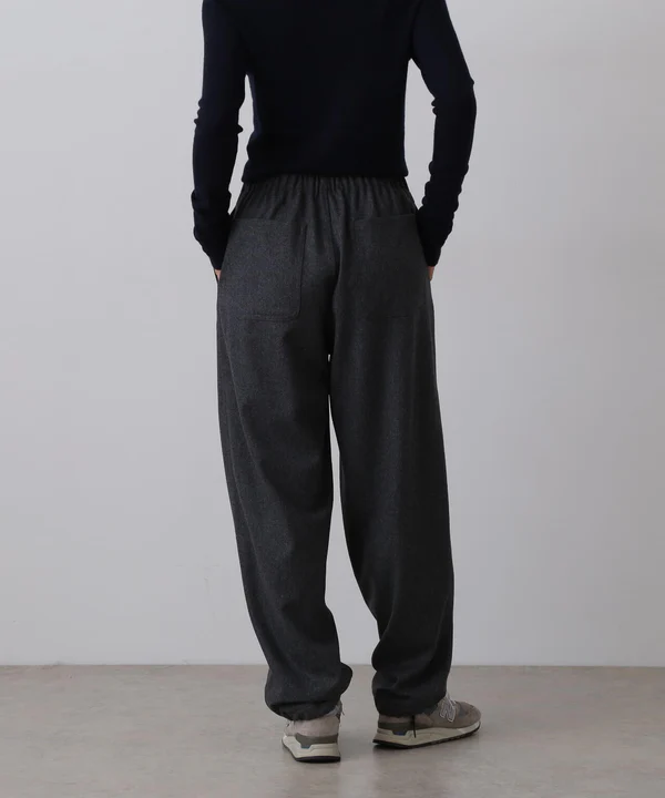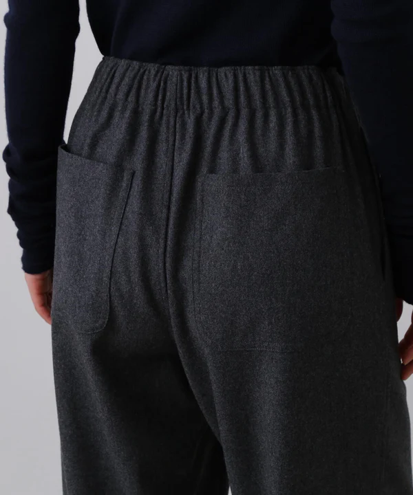 SUPER120’S紡毛ウールをオリジナルのは番手で引いたライトなフランネル素材。軽く暖かく風合いの良い素材で、イージーパンツに仕上げました。