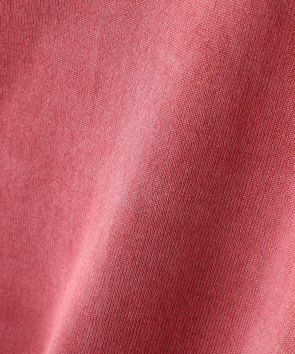 表面にレーヨン、裏面にコットンを使用したプレーティング天竺にピグメント加工を施し、他にはない独特な風合いに仕上げた素材を使用しています。