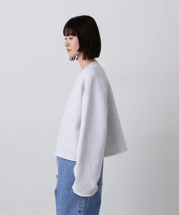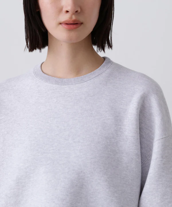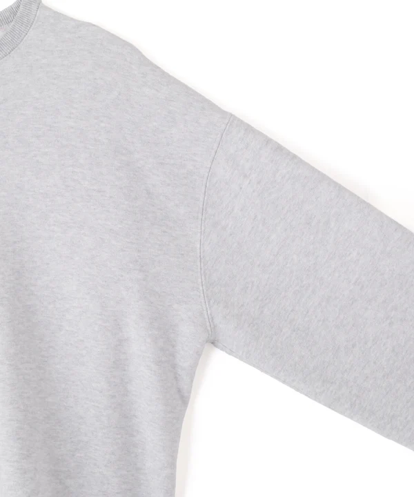 しっかり目が詰まった裏毛に、ライトグレーは生地でブリーチを入れて通常の色展開にはない薄いトップグレーを。チャコールは製品でブリーチ加工を入れて古着っぽいイメージで仕上げました。