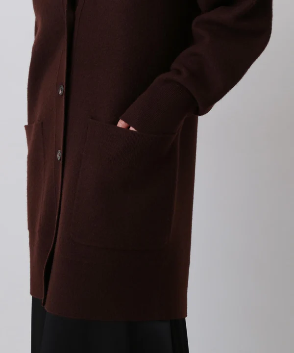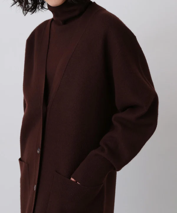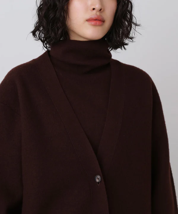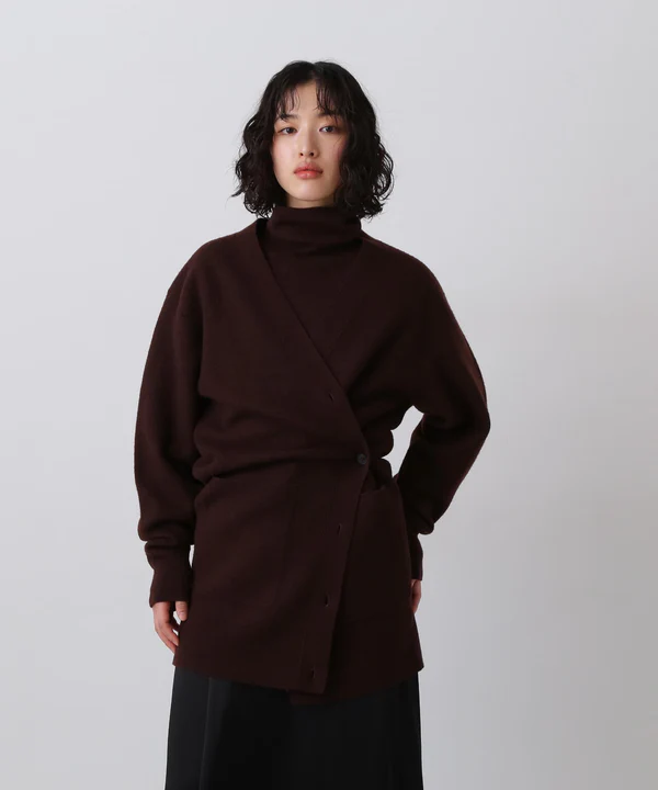 コートのように羽織れる重厚感と、ツイスト着用もできる二面性カーディガン。