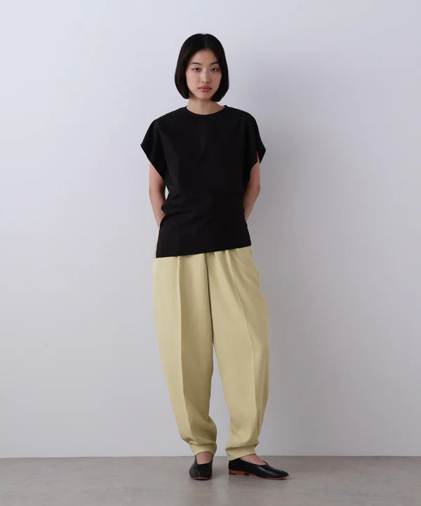 前後左右にわたってカーブを描くような立体的なシルエットのテーパードパンツ。